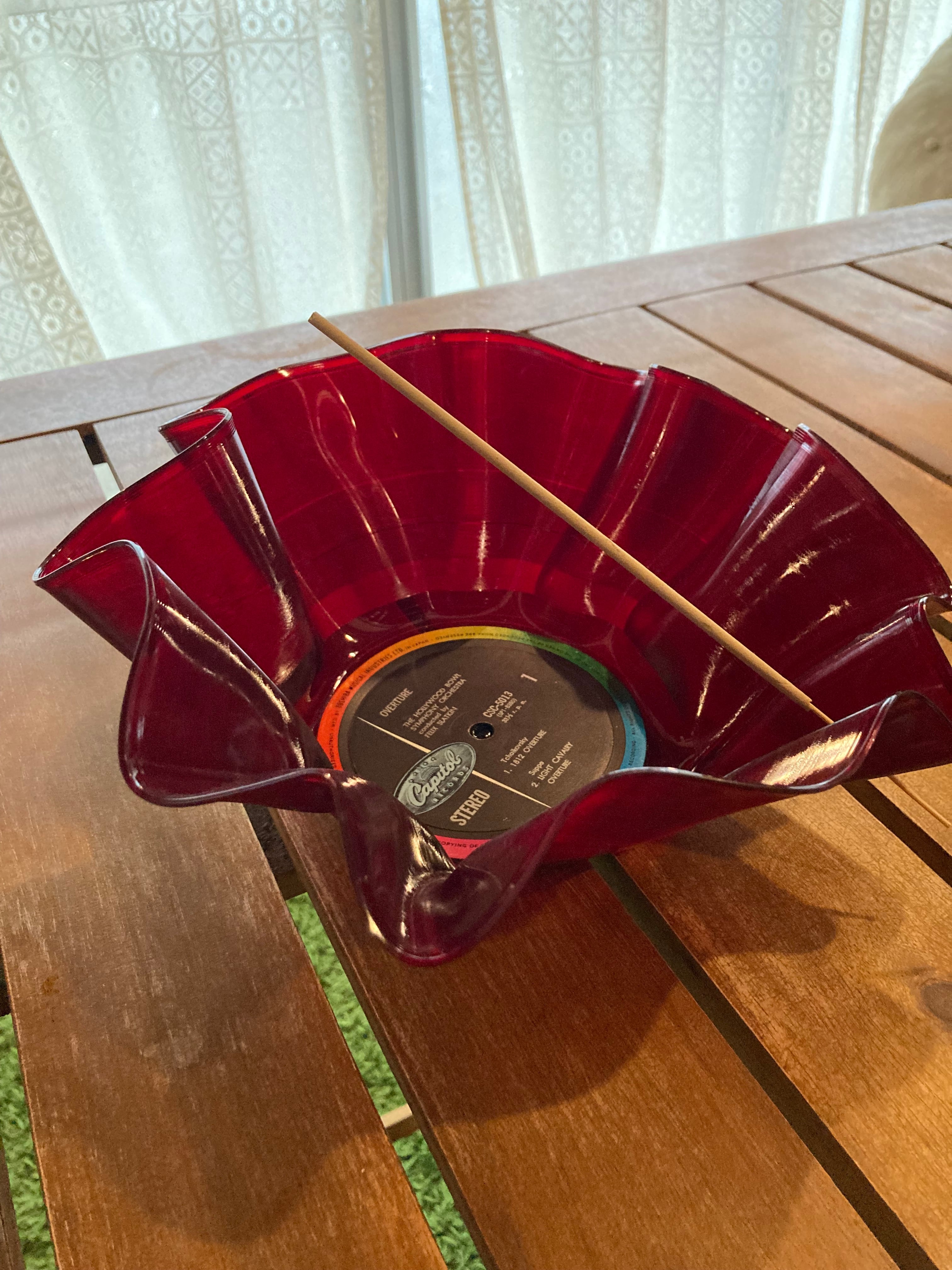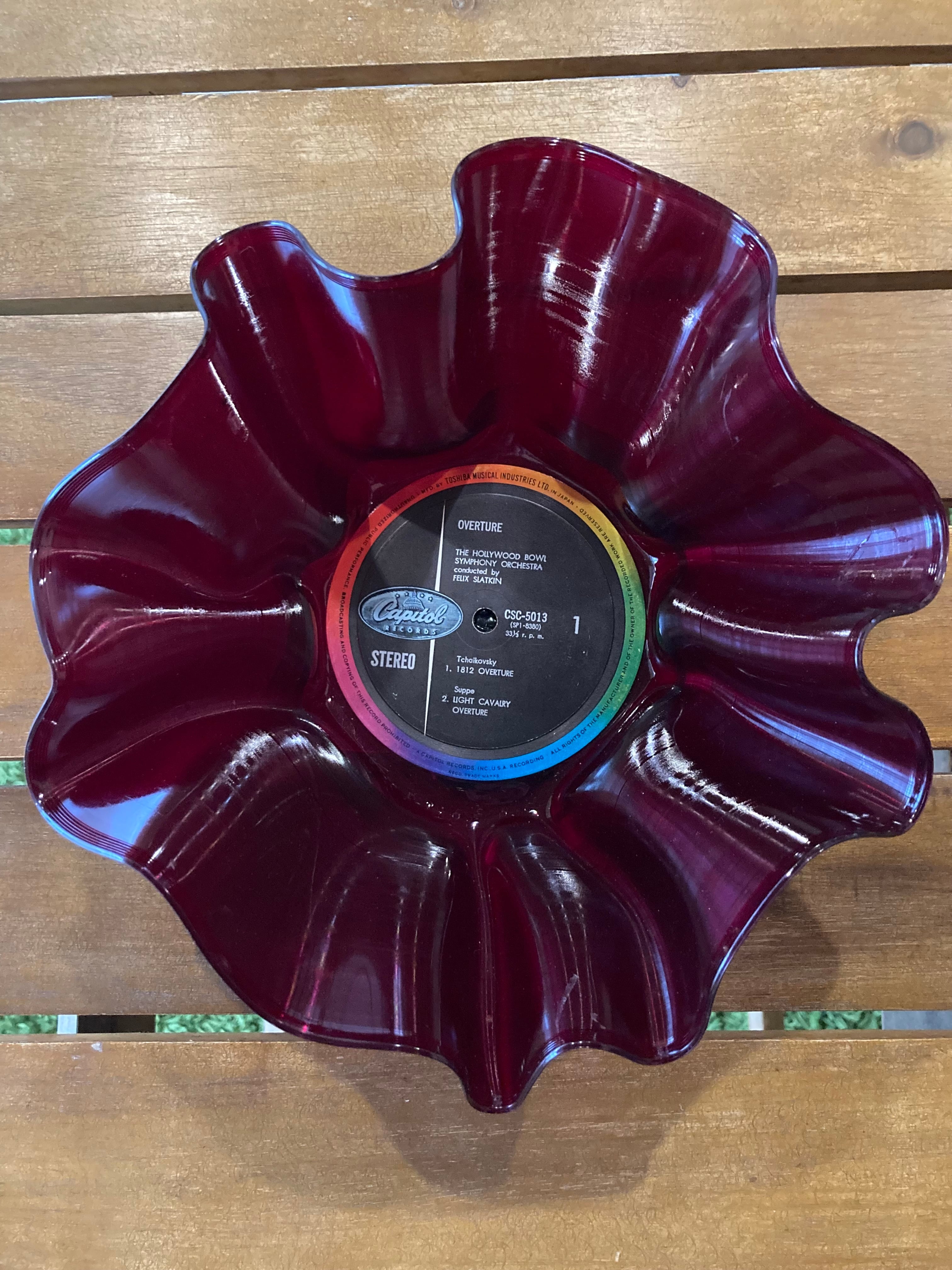 レコードをアップサイクルして作られたお香立て。ひとつひとつハンドメイドで曲げ曲げしているので、全部カタチが違います。
