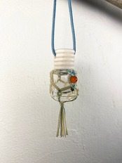 バックパッカーの旅で触れた様々な国の文化や空気をマクラメ、ボロシリケイトガラス、クレイアート、レザークラフト、刺繍などを通して表現。